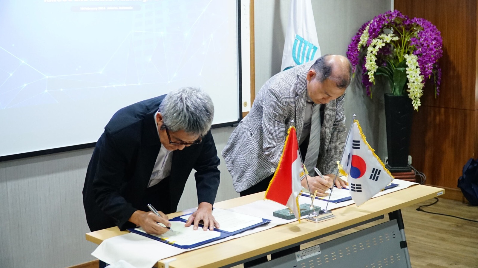 Dari KMOUC, hadir Prof. Dr. Oh Jin Seok selaku Ketua KMOUC, serta Mr. Cho Ilhyung, Mr. Hyuncheol Choi dan Ms. Alia Yasmin Arief sebagai perwakilan lainnya. Sementara itu Prof. Dr. Ir. Iwa Garniwa M. K., MT selaku Rektor ITPLN dan para Wakil Rektor I-IV menghadiri acara ini.