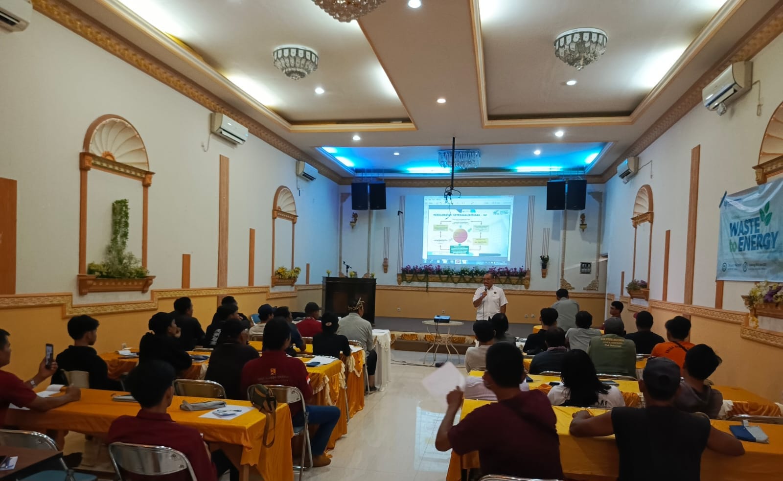 Sedangkan dihari kedua materi yang disampaikan adalah : Pengumpulan Sampah Menjadi Energi dan Pengolahan Sampah ditinjau dari Aspek Lingkungan. Serta pembuatan SOP, instruktur yang menyampaikan materi adalah Syarief Hidayat, M.T.; dan I Made Indradjja M Brunner., Ph.D.