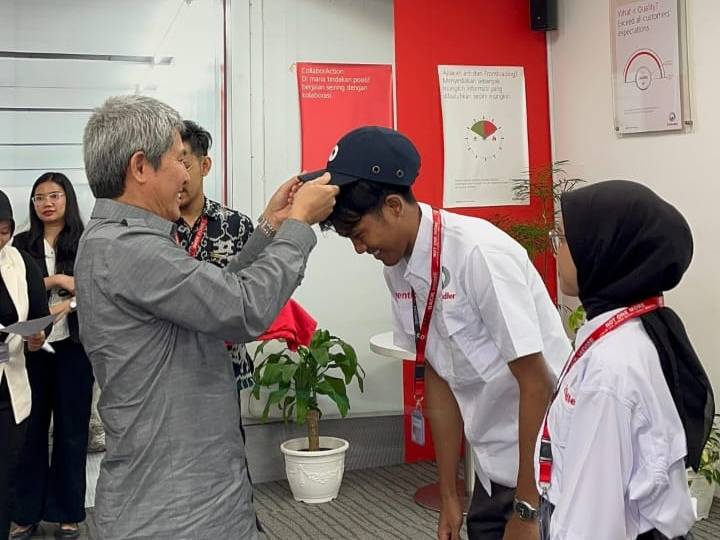 Dalam kesempatan itu, Prof. Iwa juga menyematkan topi kepada perwakilan peserta Apprentice Program, simbol dimulainya pelatihan resmi. Ia turut meninjau sejumlah fasilitas pelatihan Berca Schindler Lifts, antara lain training center, warehouse, dan office, untuk memastikan kesiapan sarana penunjang pembelajaran.