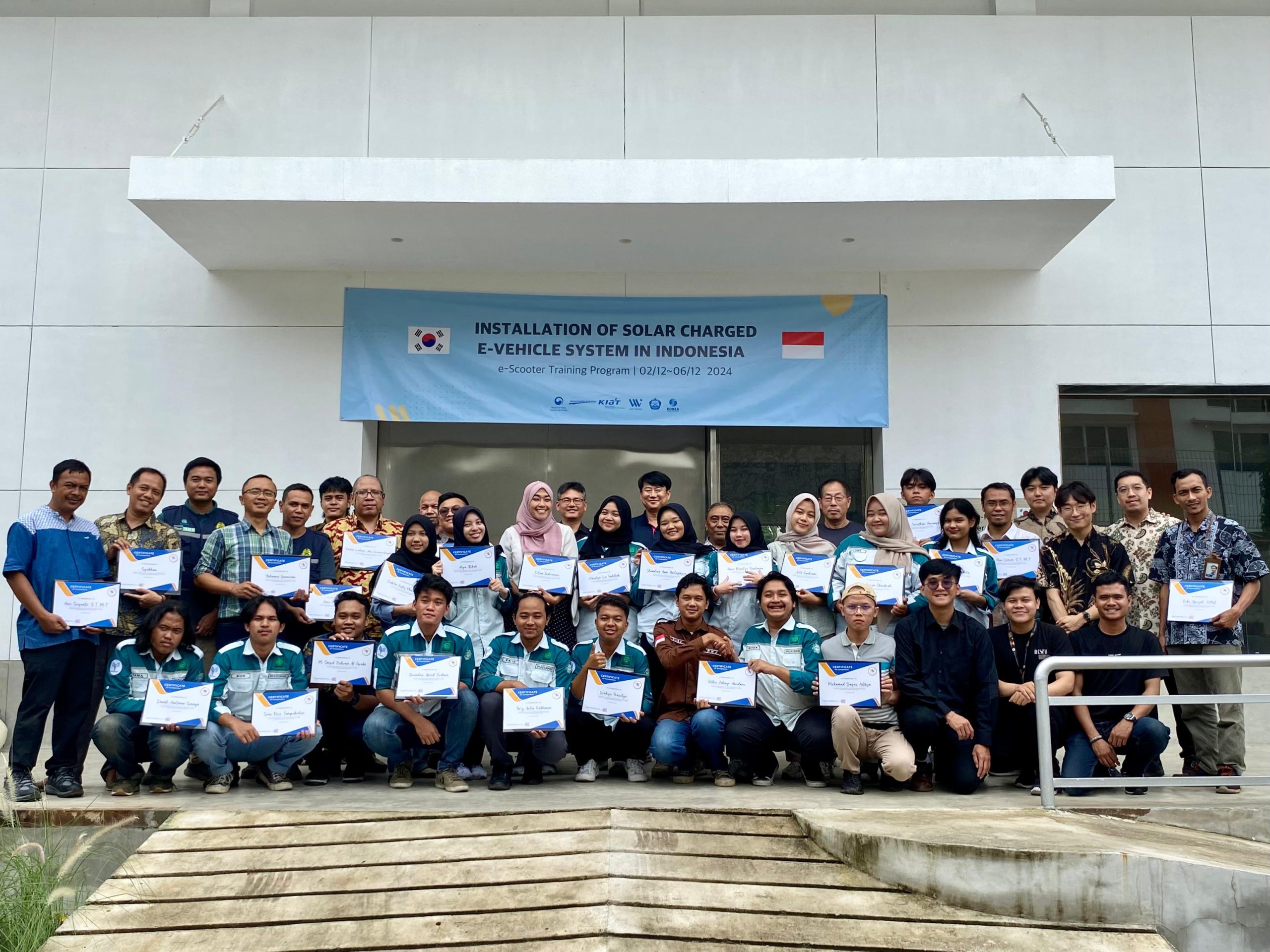 Pelatihan ini merupakan implementasi sistem kendaraan listrik bertenaga surya di Indonesia yang diselenggarakan Verywords Co., Ltd, Korea. Pelatihan ini bertujuan untuk memperkenalkan teknologi kendaraan listrik mutakhir, khususnya pada sistem sepeda motor listrik yang dilengkapi dengan pengisian daya berbasis energi surya, serta mendukung pengembangan kompetensi di bidang ini.