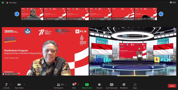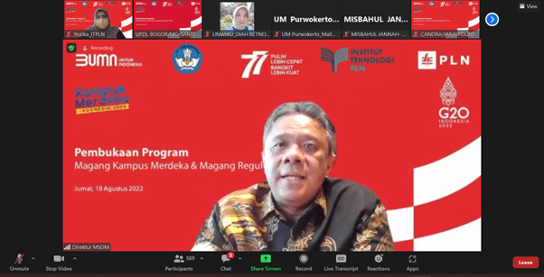 Merdeka Belajar Kampus Merdeka atau yang biasa disingkat MBKM merupakan program yang dicanangkan oleh Menteri Pendidikan, Kebudayaan, Riset, dan Teknologi Republik Indonesia Bapak Nadiem Makarim yang bertujuan untuk mendorong mahasiswa agar dapat menguasai berbagai keilmuan untuk bekal memasuki dunia kerja. Dalam pelaksanaannya, Mahasiswa akan melakukan praktik magang selama 1 semester di perusahaan demi mempelajari dan mempraktikan ilmu teori yang telah dipelajari di kampus. Salah satu perusahaan yang membuka kesempatan MBKM adalah PT PLN (Persero), pada Jumat, 19 Agustus 2022 mulai pukul 14.00 WIB telah dilaksanakan acara pembukaan Program Magang Kampus Merdeka dan Magang Reguler di PT PLN (Persero).