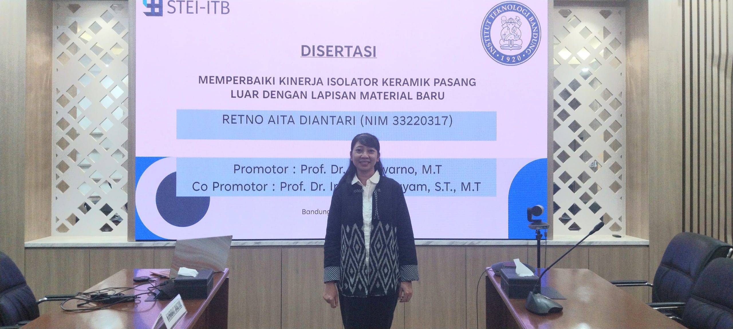 Retno mempertahankan disertasinya di hadapan tim penguji Sekolah Teknik Elektro dan Informatika ITB, belum lama ini dengan judul “Memperbaiki Kinerja Isolator Keramik Pasang Luar dengan Lapisan Material Baru”.
