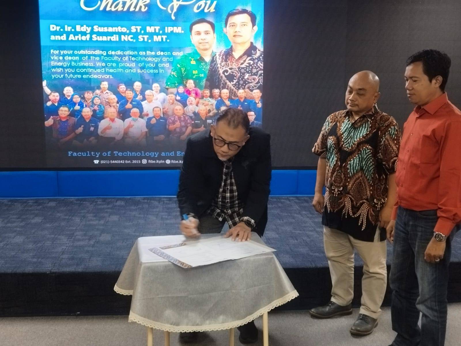 “Ini suatu kehormatan yang besar. Terima kasih kepada pimpinan ITPLN yang telah memberikan kepercayaan kepada kami. Saya juga memohon bimbingan dari Pak Edy dan Pak Ari Suardi untuk bersama-sama membuat terobosan baru di FTBE. Dukungan dari para kaprodi, seperti Teknik Mesin, Teknik Industri, dan Kewirausahaan juga sangat kami harapkan,” kata Eri Prabowo.