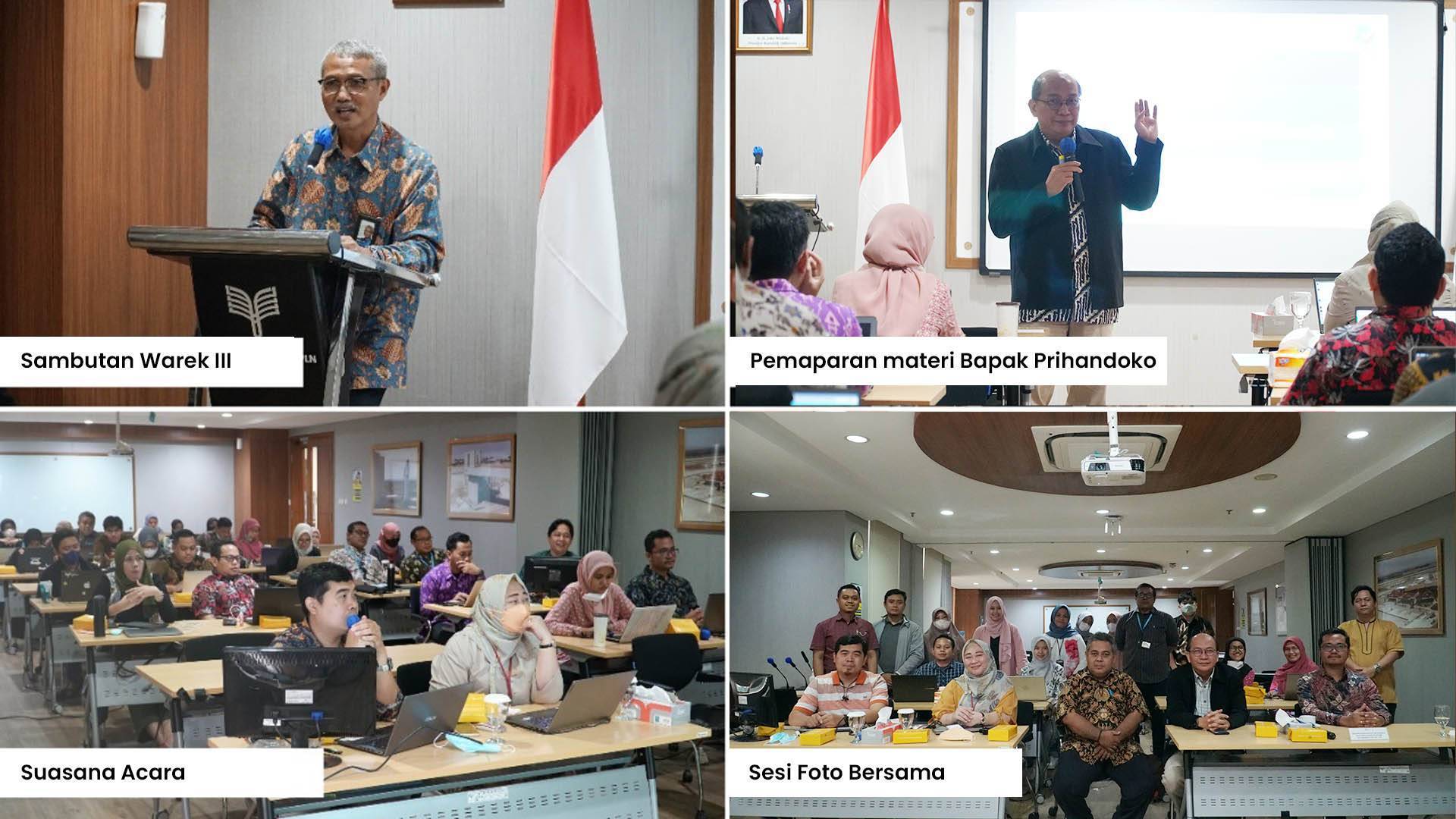 Kegiatan dibuka dengan sambutan dari Bapak Ishvandono selaku Wakil Rektor III beliau menyampaikan “Terima kasih atas kehadiranya pada pagi hari ini untuk kita bisa melaksanakan kegiatan workshop pembekalan akreditasi Teknik Informatika, semoga dengan dilaksanakan kegiatan workshop ini kita bisa mendapat penjelasan dan ilmu yang bermanfaat untuk kita dalam usaha meningkatkan akreditasi menjadi unggul“ ujar beliau. Kemudian dilanjutkan dengan sambutan dari Ibu Meilia Nur Indah selaku Dekan FTEN dan pemaparan materi oleh Bapak Prihandoko mengenai bagaimana membangun sistem penjaminan mutu Perguruan Tinggi yang efektif.